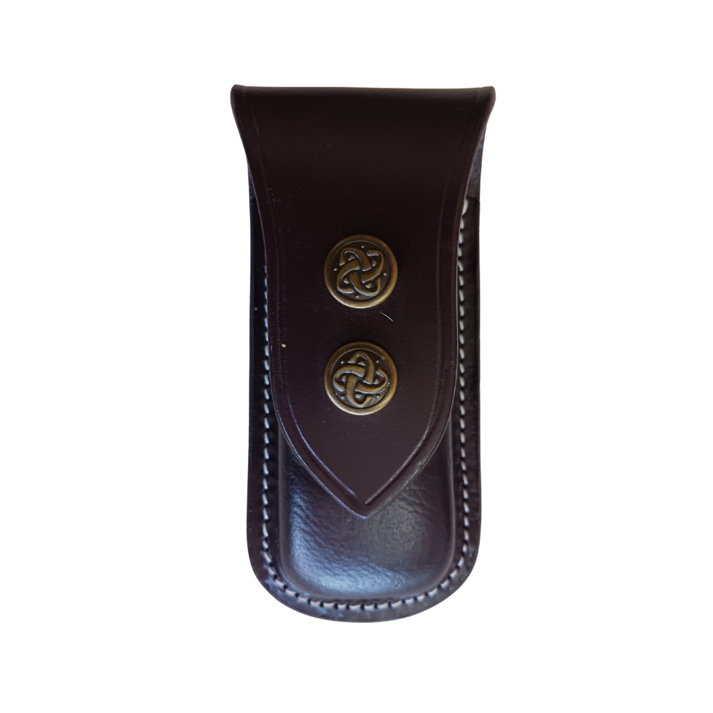 Coming in three sizes, these multi-tool pouches fit snugly onto belts in two configurations - resting horizontally alongside the length of the belt, or standing up vertically against the leg. Each case is made of genuine leather by Victor, who specialise in hand made belts and accessories. Large and medium holders are fastened with two snaps, while the small has a singular snap.